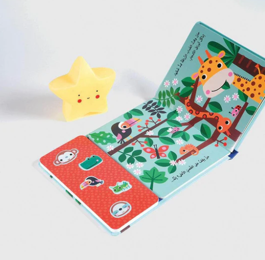 استمتعوا برحلةٍ ممتعةٍ مع هذا الكتاب الصّوتيّ السّاحر، حيث يمكن للأطفال استكشاف 5 أزرارٍ تصدر أصواتاً شيّقةً ستضفي الحياة على الكتاب المليء بالرّسومات الأخّاذة.